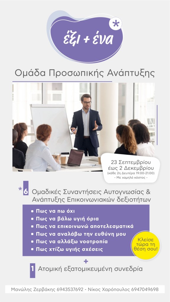 Σε προσκαλούμε να συμμετάσχεις κι εσύ στην καινούρια μας ομάδα προσωπικής ανάπτυξης και επικοινωνίας «έξι + ένα»