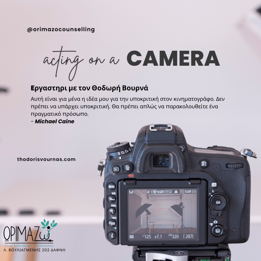 5μηνό εργαστήρι υποκριτικής στην κάμερα. Απευθύνεται σε όσους θέλουν να γνωρίσουν την υποκριτική στην κάμερα ή να αποκτήσουν εμπειρία στη διαδικασία του γυρίσματος, βελτιώνοντας τις τεχνικές και τις δεξιότητες τους. Οι μαθητές θα περάσουν από τη θεωρία στην πράξη, καθώς θα προβάρουν σκηνές και θα δοκιμάσουν τεχνικές. Στο τέλος θα γυρίσουν ο καθένας μια σκηνή που θα τους δοθεί ολοκληρωμένη ως προσωπικό τους reel.